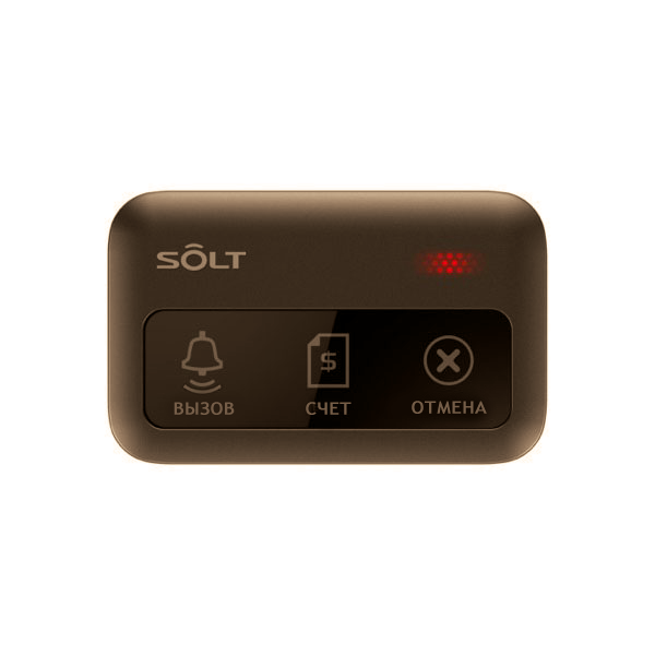 Многофункциональная кнопка с ярким дизайном оснащена функциями: Вызов / Счет Отмена. Одна кнопка позволяет послать сигнал на пейджер и приемник сигнала, второй кнопкой осуществляется отмена вызова. Третья кнопка применяется для запроса счета. Идеально подойдет для малоосвещенных помещений, так как имеет дополнительную светодиодную подсветку по периметру. Так же возможно нанесение Вашего логотипа.